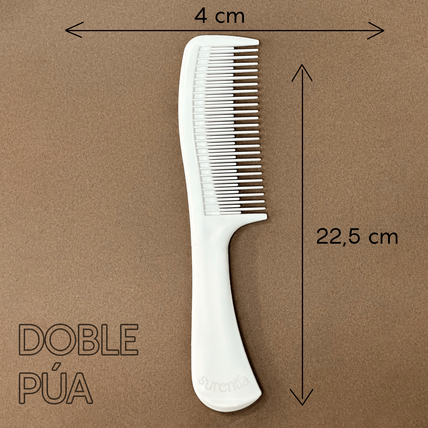 • TAMAÑO GRANDE: ¡Este ejemplar se destaca por su magnitud y es ideal para aquellos que buscan un peine más robusto! Olvídate de los días en los que tu cabello necesitaba más soporte. Con una longitud de 22,5 cm, sus púas grandes de 3 cm y las más pequeñas de 1,5 cm, este peine proporciona un manejo eficaz y cómodo para todos los tipos de cabello.